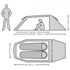 Im Lieferumfang sind der Seamsealer, ein Reparaturset, Abspannschnüre und Heringe enthalten. Die Schnüre werden über hochwertige Dreieckabspanner gespannt, welche deutlich einfacher zu justieren sind als herkömmliche Abspannsysteme. Für eine optimale Belüftung sind an den beiden Stirnseiten zwei große Belüftungsöffnungen angebracht. Der Aufbau fällt dank der Farbcodierten Gestänge besonders leicht, da Du hierdurch genau weißt welche Stange wo hingehört.